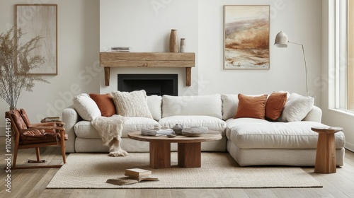 Cozy Living Room with Neutral Tones and Modern Furniture Arrangement