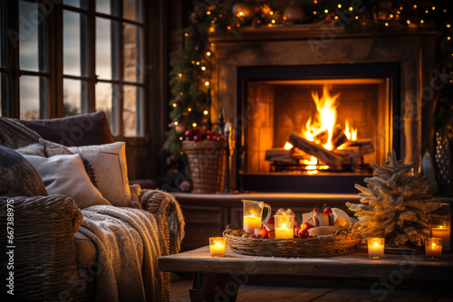 Cozy relaxation by the fireplace in a homely environment ai generative
