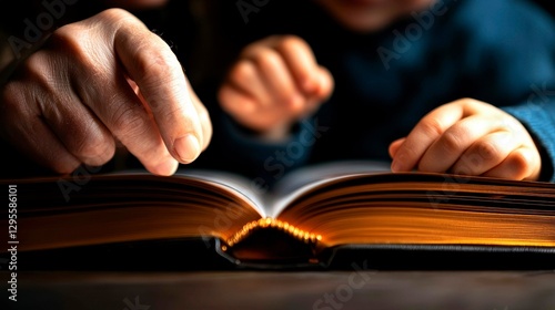 Cozy Story Time Child and Adult Reading Book Together in Warm Light Knowledge and Imagination Abound