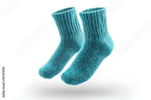 Cozy turquoise knit socks displayed against a bright background for a vibrant winter vibe isolated on transparent background