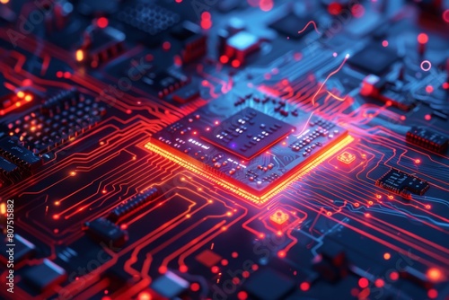 CPU processor microchip circuit board illustration created with generative ai