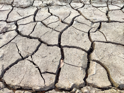 Cracked earth reveals the impact of drought and soil erosion in arid conditions across the landscape