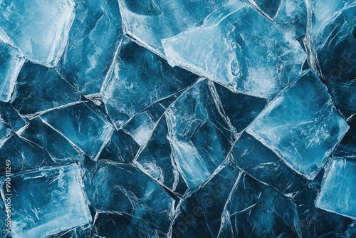 Cracked ice texture with jagged, translucent shards reflecting cool, blue tones