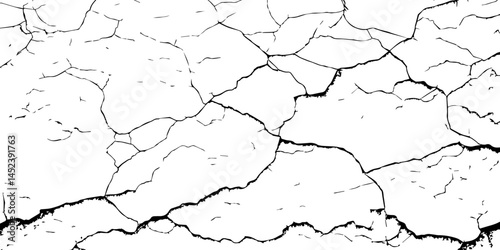 Cracked Surface Grunge Texture Vector. Grunge design crack texture background. Black Isolated on White Background. Distressed black texture. Uneven Overlay. Vector Illustration