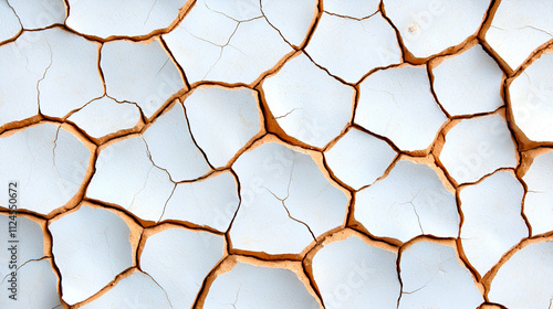 Cracked surface with light brown and white patterns, showcasing texture and natural decay in a close-up view.