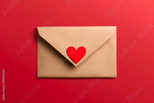 Craft paper envelope with red heart. Romantic love letter