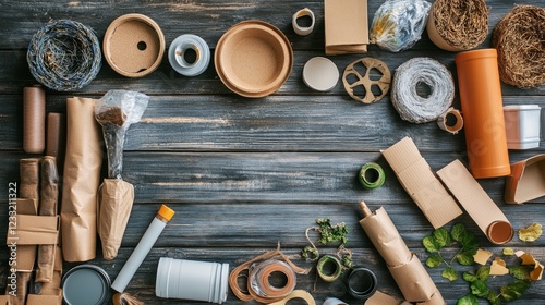 Crafting Supplies Arrangement on Rustic Wooden Table Surface