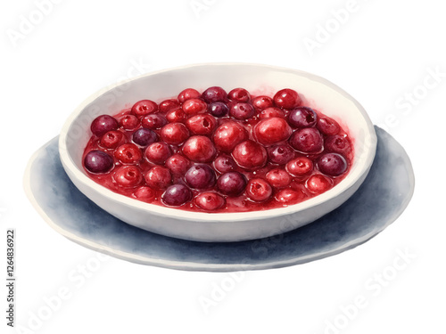 Cranberry Sauce - Vibrant Cranberry Sauce with whole berries, rich red and purple hues, isolated on transparent background, dynamic motion