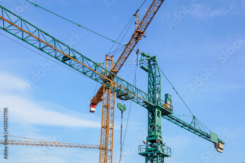crane tower on sky background at construction site