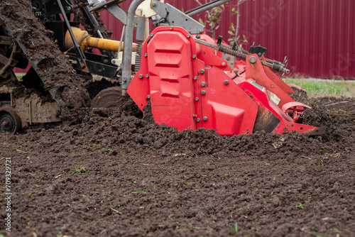 crawler tractor plunged the cutter into the ground for loosening and mulching.