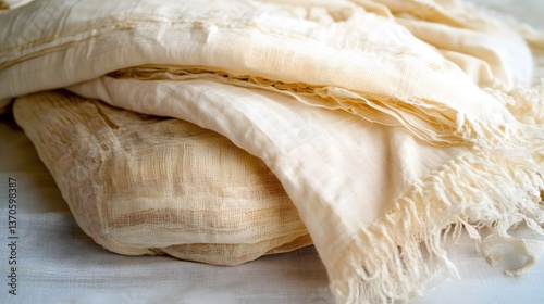 Cream Beige Gauze Fabric Textile Soft Texture Close Up