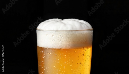 Creamy beer foam atop pale lager in minimalist setting, visual simplicity