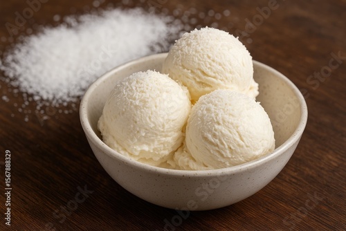 Creamy coconut dessert served in a bowl with shredded coconut garnish