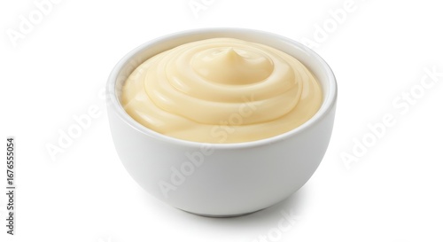 Creamy Mayonnaise Swirl in White Bowl, Isolated on White Background, Studio Lighting