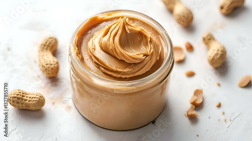 Creamy Peanut Butter in Glass Jar Isolated on White Background
