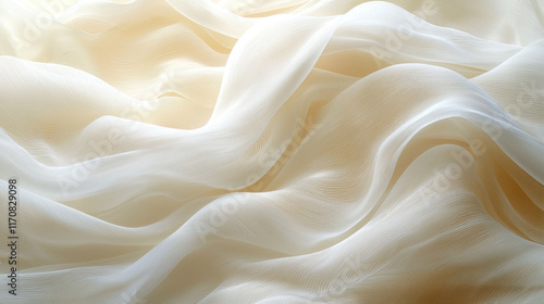 Creamy, sheer fabric draped in soft folds, creating a luxurious texture.