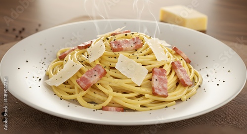 Creamy Spaghetti Carbonara with Parmesan and Pancetta in Realistic Pasta Image