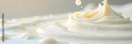 Creamy White Liquid Cascading Down Smooth Surface, Creating Soft Flowing Textures and Ripples; Luxurious Culinary Art Photography
