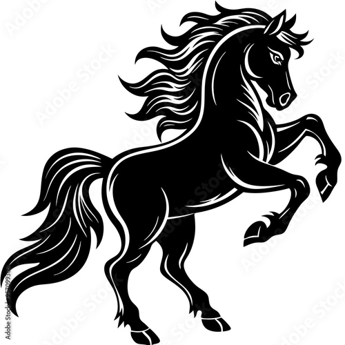 Create a Vector Silhouette of a Majestic Prancing Horse with Flowing Mane and Extended Legs