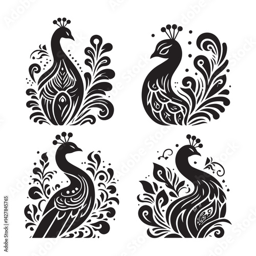 create peacock bird Silhouette with white background