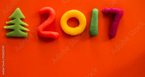 create the colorful number for the year 2017 with clay, the best practice for the development of muscular young children, copy space