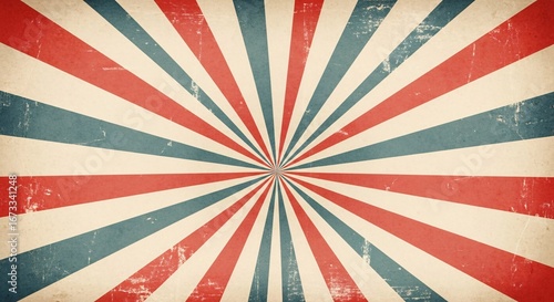 Create vintage designs with this dynamic sunburst background in patriotic red, white, and blue