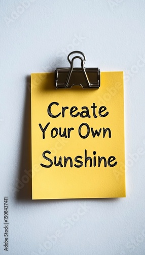 Create Your Own Sunshine. Motivational Quote On A Yellow Sticky Note, Isolated On White Background.