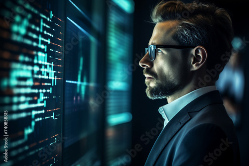 Created with generative AI picture of confident office worker IT specialist system administrator manager