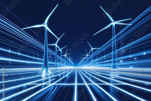 Creative Abstract Vector Art Highlighting Renewable Energy Solutions with Bright Lines and Fluid Motion on a Deep Blue Background