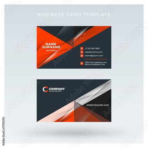 Creative and clean double-sided business card vector template with abstract background. Red and black color theme. Flat design vector mockup. Stationery design
