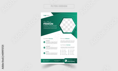 creative and modern medical and healthcare cover a4 template design and flat icons for a report and medical brochure design, flyer, leaflets decoration for printing and presentation vector.