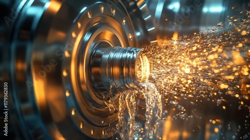 creative animation of water droplets turning into sparks of electricity as they pass through a turbine.
