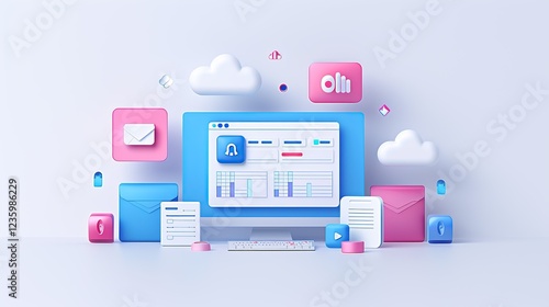 Creative App Design with Vibrant Blue and Pink Elements in Illustration Style