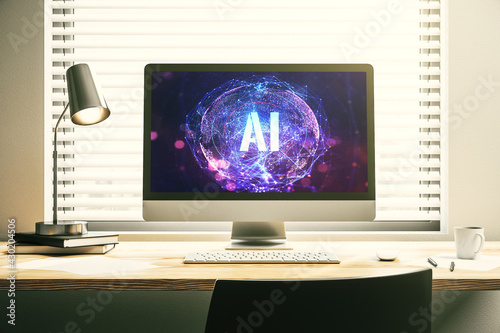 Creative artificial Intelligence symbol concept on modern computer monitor. 3D Rendering