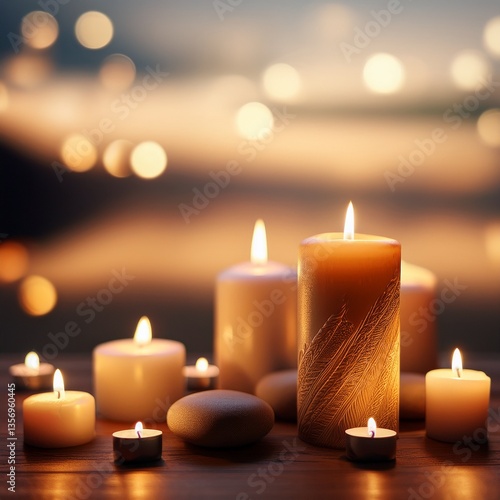 creative beautiful candles background, copy space for for use in meditation; and peace of mind concept