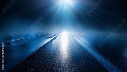 creative blurry dark road wet asphalt reflection of rays in the water abstract dark blue background smoke smog