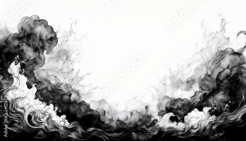 creative border frame of fire explosion , smoke and fire clouds background with copy space