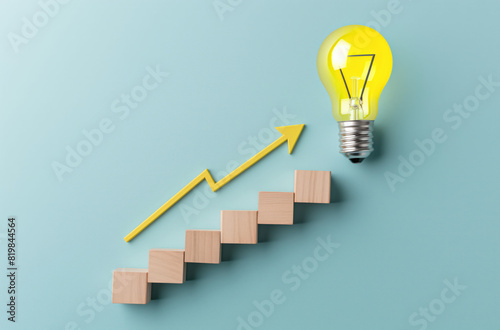 Creative Business Growth Concept with Yellow Lightbulb and Arrow