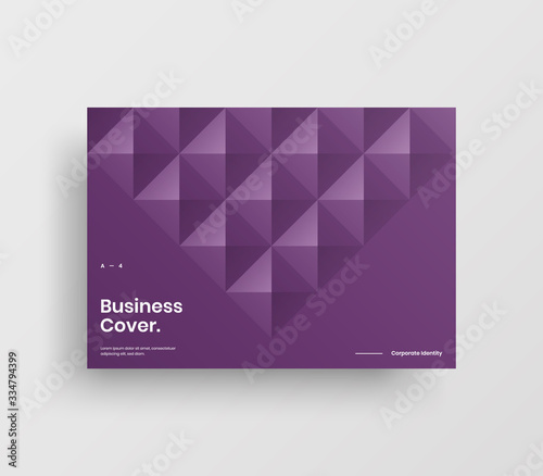 Creative business presentation vector A4 horizontal orientation front page mock up. Modern corporate report cover abstract geometric illustration design layout. Company identity brochure template.