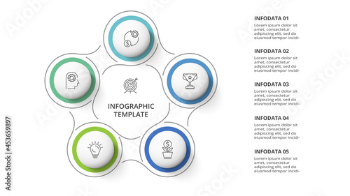 Creative concept for infographic with 5 steps, options, parts or processes. Business data visualization.