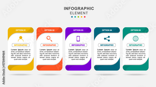 Creative concept for infographic with icons and 5 steps, options, parts or processes. Business data visualization