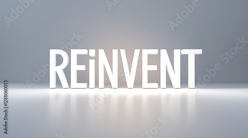 Creative display of the word reinvent with a minimalistic background and bright lighting