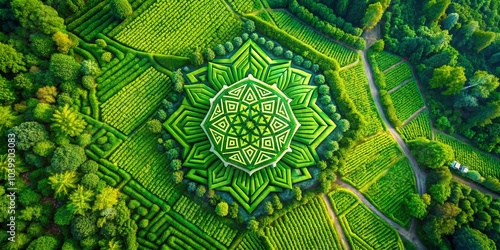 Creative Green Logo Design Featuring Geometric Patterns for Aerial Photography Use