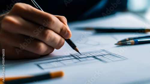 Creative hand sketching architectural designs with pencils on paper.