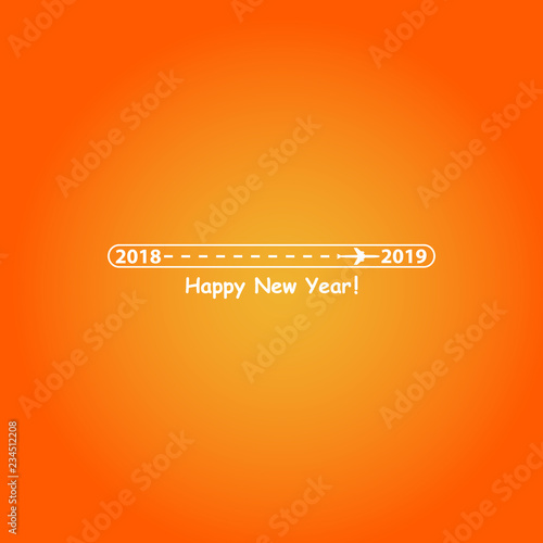 Creative happy new year 2019 design with Progress loading bar with airplane is in a dotted line. The flying apartment is black. The waypoint is for a tourist trip. Track on a orange background. Vector