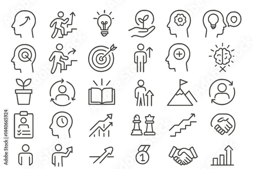Creative icons representing growth, learning, and achievement in personal and professional development