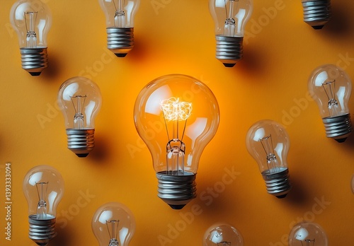 Creative Idea and Innovation Concept Light Bulbs on Bright Background Symbol of Inspiration and Invention : Generative AI