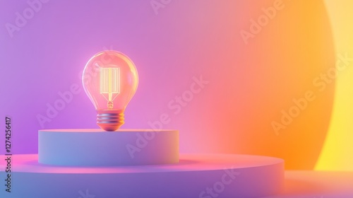 Creative Innovation: Abstract Modern Wallpaper with Illuminated Light Bulb on Pastel Gradient Background