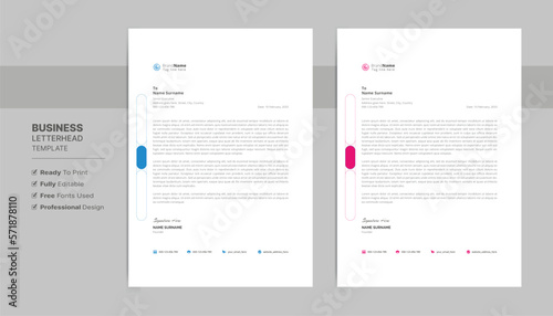 Creative letterhead format template, business style letterhead design template. Company letterhead template designs. Letterhead, flyer template.