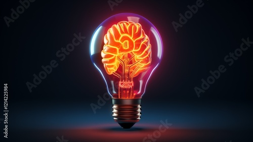 Creative lightbulb dark and colorful brain on dark background 3d illustration for powerful idea gene